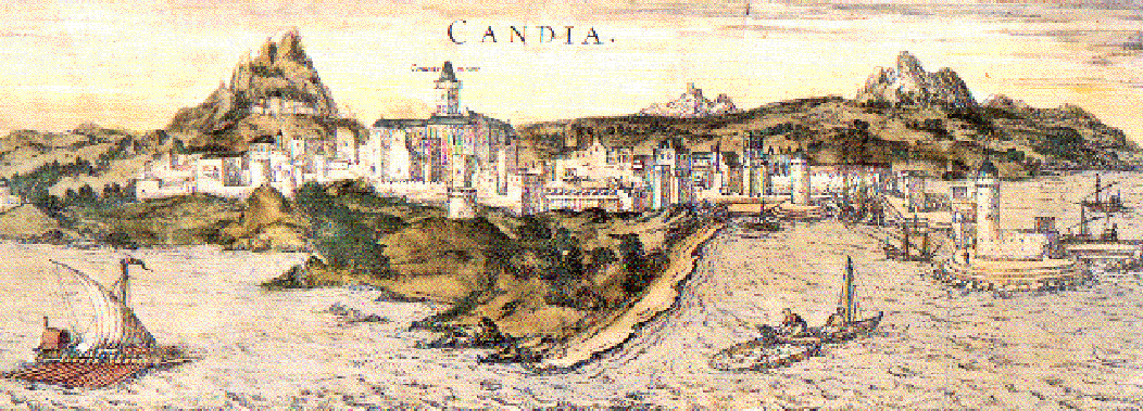 ΕΙΣΑΓΩΓΗ: Το 1204 αρχίζει μια νέα περίοδος για ολόκληρη τη Κρήτη και ιδιαίτερα για τον Χάνδακα. Με την κατάλυση της Βυζαντινής Αυτοκρατορίας από τους Σταυροφόρους της Δ΄ Σταυροφορίας οι αρχηγοί τους μοιράζονται τα εδάφη της και η Κρήτη παραχωρείται στο Βονιφάτιο τον Μομφερατικό. Αυτός την παραχωρεί στους Βενετούς, έναντι της τιμής των 1000 μάρκων αργύρου. Οι βενετοί όμως είναι απασχολημένοι με την εδραίωση των κτήσεών τους στην Πελοπόνησο και στο Αιγαίο και παραμελούν τη Κρήτη. Αυτό το εκμεταλεύεται ο Γενουάτης αρχιπειρατής κόμης της Μάλτας Ερρίκος Πεσκατόρε ο οποίος το 1206 καταλαμβάνει μεγάλο μέρος της κεντρικής κυρίως Κρήτης . Μάλιστα για να εδραιώσει την κυριαρχία του αρχίζει να οχυρώνει τα φρούρια του Χάνδακα, Ρεθύμνου, Σητείας και χτίζει και άλλα σε άλλες στρατηγικές θέσεις. Οι Βενετοί αντιδρούν άμεσα με μια αποτυχημένη επέμβαση το 1207. Το 1209 γίνεται εκστρατεία που διαρκεί ως το 1211. Ο Πεσκατόρε συνθηκολογεί με τους Βενετούς αποκομίζοντας οφέλη. ΄Ετσι λοιπόν αρχίζει μια νέα μακρόχρονη και σκληρή δουλεία για τη Κρήτη που βρίσκεται τώρα κάτω από το άγριο φτερωτό λιοντάρι της Βενετίας. Η νέα αυτή κτήση γίνεται η σπουδαιότερη υπερπόντια αποικία της Βενετίας και παίρνει το όνομα " Regno di Candia" Βασίλειο της Κρήτης. Ο Χάνδακας γίνεται η έδρα του Διοικητή και του Λατίνου Αρχιεπισκόπου του νησιού και μετονομάζεται σε Candia ή αλλιώς " Βενετία της Ανατολής".Τα περισσότερα κτίσματα της πόλης είναι πιστά αντίγραφα της Μητρόπολης Βενετίας.Σεόλη αυτή την περίοδο γίνονται διάφορες επαναστάσεις από τους Κρητικούς λόγω της καταπίεσης και της αυθαιρεσίας των Βενετών. Σεόλη την περίοδοτης Βενετικής κυριαρχίας Κρητικοί ευγενείς όπως οι Καλλέργηδες, Σκορδίληδες, Βλαστοί και άλλοι, ηγήθηκαν εξεγέρσεων και κάποιες φορές πετύχαιναν την παραχώρηση προνομίων από τους Βενετούς. Μέσα στη δίνη αυτών των γεγονότων η Κρήτη βρίσκει τη δύναμη και τον τρόπο να κλείνει τις πληγές της. Η άλωση της Κωνσταντινούπολης διαλύει το όνειρο της ένωσης, επενεργεί όμως κατευναστικά στις σχέσεις του κρητικού με το Βενετικό στοιχείο που από κοινού αντιμετωπίζουν αργότερα τον Τούρκο κατακτητή. ¨Ετσι με την παγίωση της ηρεμίας, φτάνει ο καιρός πάλι να συνεισφέρει η Κρήτη στη δημιουργία του νέου πλατύτερου Ευρωπαϊκού πολιτισμού. Διαμορφώνεται μια περίοδος άνθησης και πολιτιστικής ακμής σε όλους τους τομείς¨: λογοτεχνία, ποίηση, αγιογραφία,αρχιτεκτονική.